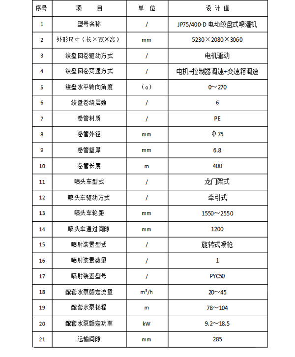 JP75/400-D電動(dòng)絞盤式噴灌機(jī)